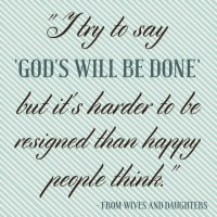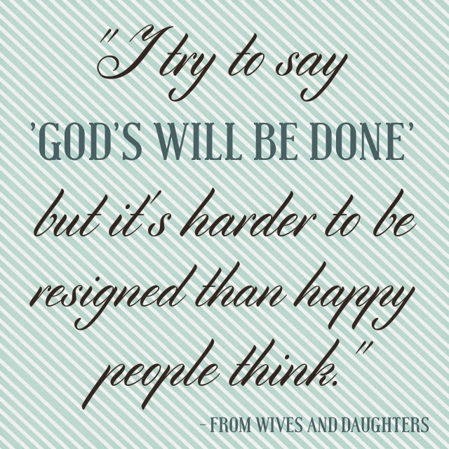 Emptiness is a feeling to which I’ve become accustomed. I often sit in my living room wondering what I’m meant to be doing. What is the point of all this? The BBC adaptation of ‘Wives and Daughters’ has one of my favourite quotes: “I try to say ‘God’s will be done’ but it’s harder to be resigned than happy people think.”
